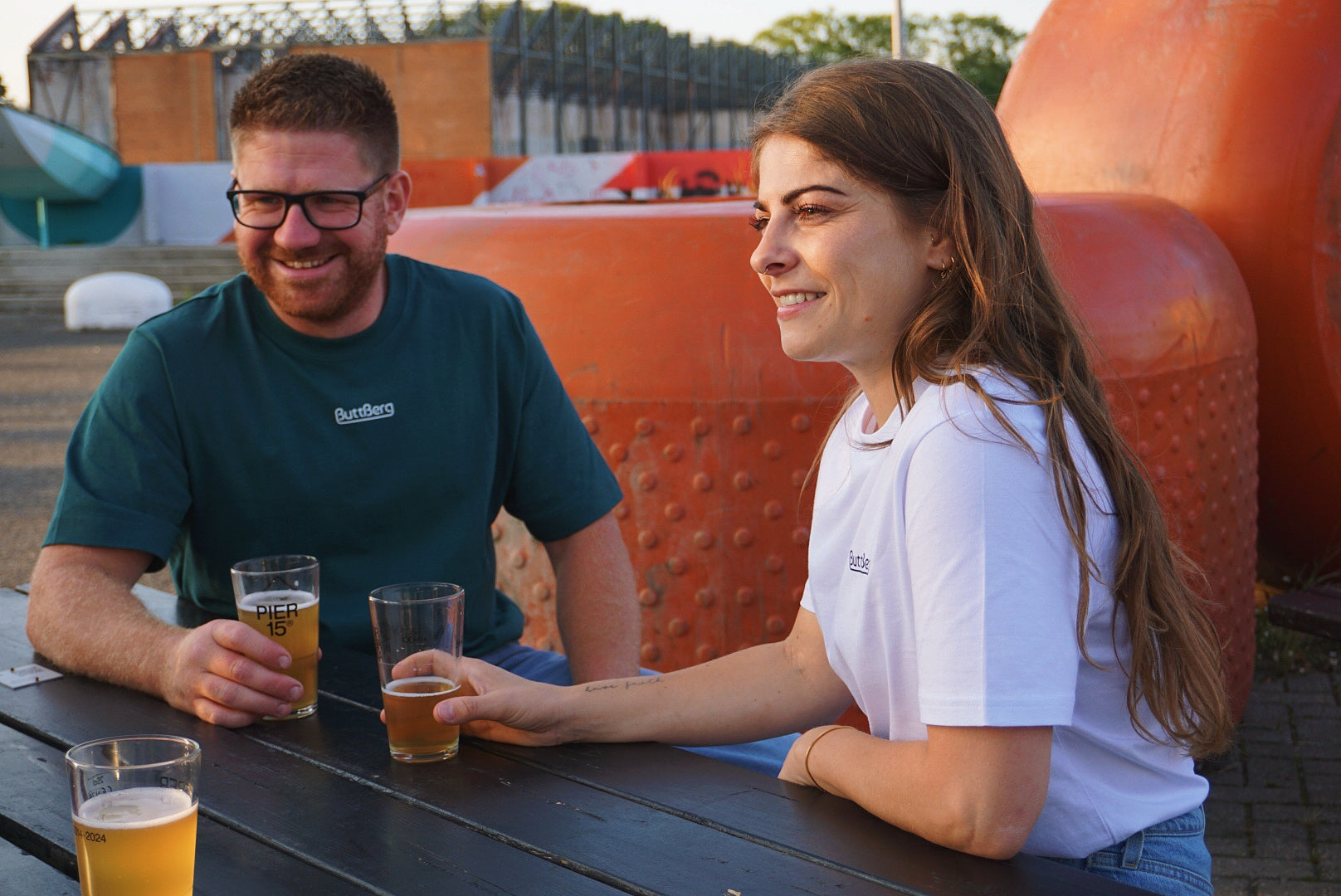 Nekbil? Jazeker, dat is ons kleine witte ButtBerg-bil logo, maar dan klein, 3 cm maar. Net onder de kraag van de nekband, subtiel, al zeggen we het zelf.